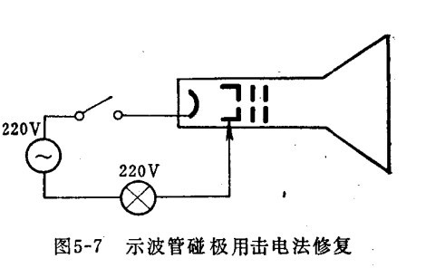 3.示波管兩極間漏電,可用高壓電壓法試修,將示波管第二陽極電壓(3000伏)接漏電的一極,另一極通地,有可能將漏電雜物燒掉